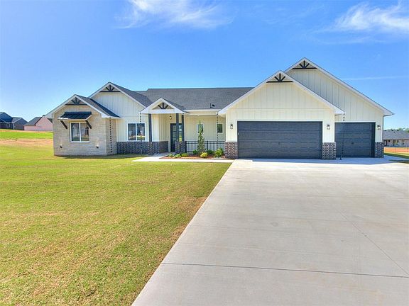 ***OPEN DAILY!!! Mon-Fri 1:00-5:00 and Sat-Sun 2:00-4:00!***This stunning new four-bed, two-and-a-half-bath home in Guthrie captures the essence of modern craftsman design by blending rustic charm with contemporary sophistication. The property creates a sense of openness and brightness, highlighted by high ceilings adorned with beautiful wood detail that adds a touch of elegance. Perfect for hosting guests, the open layout seamlessly connects the shiplap-accented living room to the spacious outdoor area through large sliding doors. The kitchen, a masterpiece, boasts a large island and custom cabinetry to enhance every cooking experience. This home strikes a perfect balance between functionality and elegance, featuring energy-efficient construction, a sturdy monolithic foundation, high-quality finishes, and improved privacy with added insulation and 8-foot solid core doors. Car enthusiasts and hobbyists will appreciate the oversized three-car garage with ample space and 50-amp service. With pre-installed wiring for a barbecue and outdoor television, this property offers a lifestyle beyond the ordinary. Experience a blend of luxury, comfort, and creativity in this exceptional Guthrie residence.