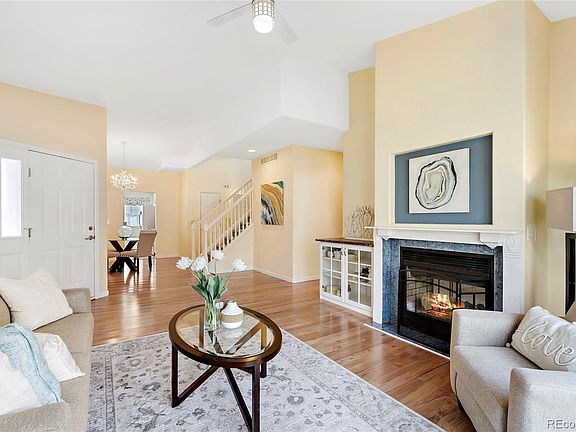 Lots of options in this well maintained, spacious and bright townhome. Lock-n-leave with low maintenance, live/work with upstairs loft/study, or a roommate situation with main floor primary suite and private upstairs ensuite set-up will all work beautifully. High ceilings, wood floors and large windows make the home comfortable and sunny throughout the day. The double-sided fireplace keeps the primary bedroom and living room warm and cozy. The generous primary suite features a walk-in closet and ensuite bathroom with a large walk-in shower and linen storage cabinets. The kitchen includes granite counters, white appliances, pantry cabinet and a cozy sun-filled breakfast nook for enjoying your morning coffee or pancakes on the weekend. The laundry room with stackable washer/dryer and built-in cabinets along with a half bath completes the main level. Upstairs features a sizeable loft that is perfect for a study/den/library/game room/exercise space, 2 bedrooms and a full bathroom. The full basement has high ceilings and provides tons of storage space or could be finished for additional living space. The community has plenty of parking for guests. Cherry Creek School District! Easy access to shopping, dining, DTC, I225 and Light Rail. Short distance to Cherry Creek State Park, Dog Parks, Trails. This one will not last long - make it your new home!