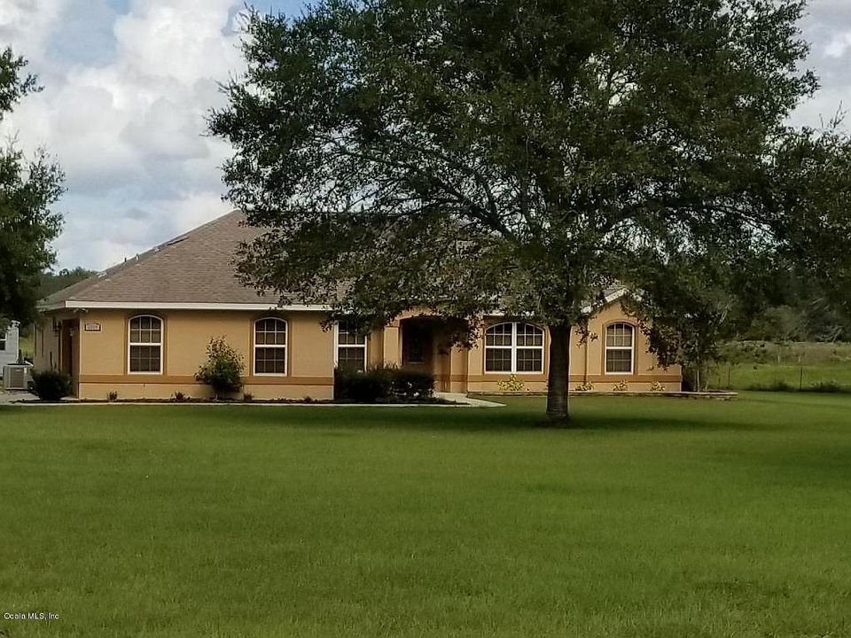 Move-in ready! Beautiful country home perfect for horses,farming or raising a family. Concrete block and stucco, 3/2/2 with a den that could be a 4th bedroom. Open floor plan, Living room with triple sliders to covered patio. Master bedroom features tray ceiling and large walk-in closet. Master bath features tile walk-in shower, double vanities and linen closet. Large eat-in kitchen with bay window and double pantry, stainless appliances. New carpet through out,ceiling fans in most rooms, upgraded hot water heater, AC and radiant barrier insulation. Low E windows. Income producing hay field and irrigation well.Partially fenced.Short driving distance to Gainesville, H.I.T.S. and popular springs.