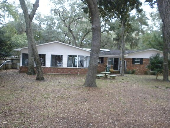 100 FRONT FEET ON THE BAY...Beautiful views of Tyndall AFB bridge and deep water with a new observation deck. This charming brick home boasts 3 bedrooms,2 baths PLUS a 25x13 all tile sunroom with gorgeous views as well which adds an additional 325 sq. ft. with a separate a/c. Owner has replaced the HVAC system within the last year. Lots of shade trees, privacy fence and an outbuilding too. There is also a huge indoor laundry room! Age, sq. footage and room size approximate...if important to buyer please verify.
