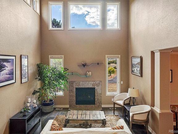 Experience the best of Colorado living in this exquisite custom-built residence, nestled on a breathtaking 5-acre cul-de-sac lot in beautiful Bell Mountain Ranch. Spanning over 5,000 livable sq. ft., this two-story features 5 bedrooms, 5 bathrooms, a fully finished basement, & spacious 3-car garage, surrounded by serene rolling hills & mountain views. Recent thoughtful enhancements showcase meticulous craftsmanship and high-end finishes w/its newly refinished driveway, new roof, & fresh exterior paint. New industrial-style office space & half bath add character and functionality, while the gourmet kitchen is a chef's dream, featuring top-tier new appliances:SMART Dacor refrig, Viking gas cooktop, & KitchenAid double ovens. There is generous natural light throughout w/soaring ceilings & grand entry staircase leading to the primary bedroom, complete w/a newly renovated 5-piece luxury bathroom. The formal living & dining areas boast a cozy gas fireplace, while the eat-in kitchen offers a granite island breakfast bar for casual dining. The expansive great room, also featuring a gas fireplace, showcases a wall of windows that beautifully frames breathtaking views, creating a connection w/nature while enjoying the comforts of home. Step outside to a walkout patio + rustic wood pergola, equipped w/an outdoor kitchen featuring a Weber grill ideal for entertaining or unwinding in your landscaped, fenced yard. The light-filled walkout basement expands your living space 1,559 sq. ft., w/a great room, an ADA-accessible 3/4 bath (ideal for multi-generational living), & a craft room that can serve as a non-conforming bedroom. Home theater & game room w/an included pool table plus a designated area for a workshop & gym, along w/ample storage options. An exceptional home that offers a unique opportunity for tranquility, w/access to 24 miles of trails rich in wildlife, designed w/equestrian enthusiasts in mind.