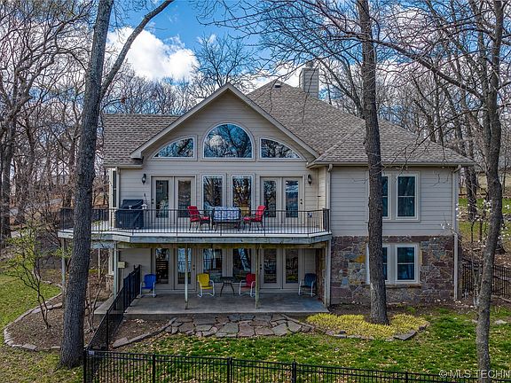 Floor to ceiling windows frame the beautiful lake views from this gorgeous home in The Coves at Bird Island at Grand Lake! The open floor plan is perfect for casual lake living featuring wood floors, vaulted ceiling with wood beams, fireplace, breakfast nook, and amazing kitchen. The lower level with two bedrooms, full bathroom, living area/gameroom and kitchenette is perfect for hosting friends and family! Three bonus rooms offer tons of flexibility. Selling mostly furnished. Updates include new case windows in 2022 with 50 year transferrable warranty, new 80 gallon hot water heater in 2022, new roof in 2020. The Coves at Bird Island is a peaceful, gated community with 24/7 manned security, an 18-hole championship golf course, swimming pool, tennis courts, a community dock, and much more!