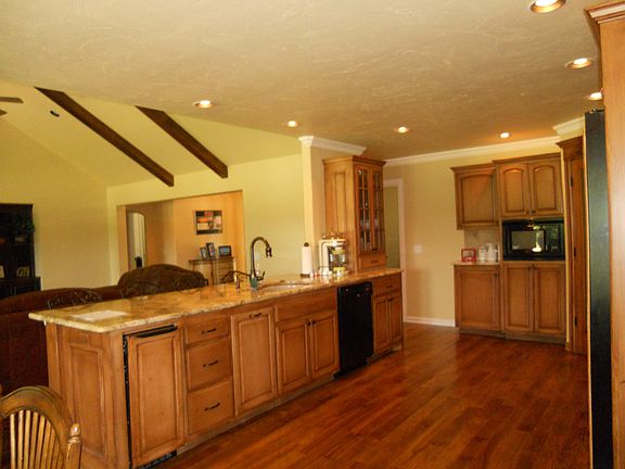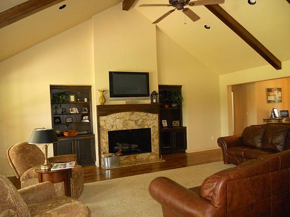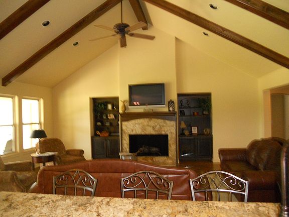 Colorado style 4 Bdrm home viewing the 18th fairway & green. Original owner, custom built w/ hardwood floors, Lg open kitchen, granite, built-ins, fireplace, vaulted beamed great rm.,spacious master suite w/ walk-in closet & Lg bath area,Lg covered deck viewing golf course, oversize garage( for boat) & side entry golf cart garage. wavy cedar & stone exterior. An EXCELLENT LOCATION! Central Sewer (25 monthly).An additional upstairs area can be finished adding 1200 sf. for additional Bdrm, bath & small living area ( est $ 20,000).