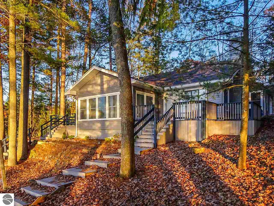 Sunset views, 130 feet of sandy beach, large wooded lot - This Spider Lake cottage has it all. The home sets just feet from the lake, with exceptional lake views from the great room, sun room and decks and offers easy access to the beach. Private setting on a paved county road offers privacy, yet is only minutes from downtown Traverse City. Features include 3 BRS, 2.5 baths, attached garage, central air and many recent updates and upgrades, including a new addition in 2016. Multiple waterfront decks, natural fireplace, central air, open floor plan, master suite with tiled bath and many more great features and upgrades. Contact Ken Weaver of Traverse North Realty at 231-668-6303 (1) to view.