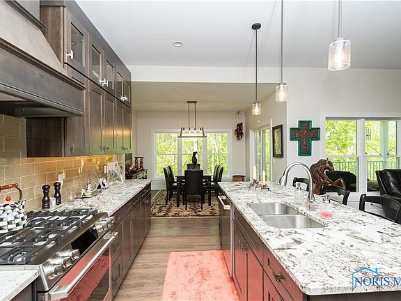 PRICED TO SELL! INCREDIBLE open floor plan w/picturesque views! LR boasts floor to 10' ceiling charcoal tile gas fireplace. Beautiful kitchen features illuminated glass top, soft close cabinetry. The tile backsplash accentuates the beautiful quartz counter, bar top island w/pendant lighting & walk-in pantry. Relax & enjoy the the serenity of your private secluded ravine from both upper & lower deck. Finished walk-out gives 2000 sq. ft. of add'l living space. Walkout includes: full bath, bedroom, kitchenette, sunroom, dining & entertainment room. Heated garage, epoxy floor & cabinetry.