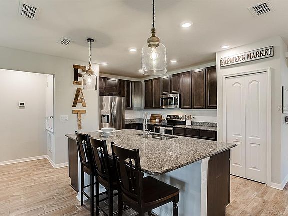 Welcome home to this almost new 5 bedroom, 3.5 bathroom 3,250 sqft home located in the premium community of Willow Walk. This spacious, move in ready home is The Columbus model by Maronda Homes & was finished in 2018. It is perfect for a large family & is full of features & upgrades throughout including tall ceilings, 2 master suites, upgraded kitchen, oversized living spaces, wood look tile, preserve backed lot & upgraded light fixtures. The spacious great room is great for entertaining & features recessed lighting, floor outlet, sliding glass doors & wood look tile flooring. Prepare a feast in the upgraded, eat-in kitchen made complete w/ recessed lighting, granite counters, closet pantry, wood cabinets & island w/ sink & breakfast bar. Host family dinner in the formal dining room w/ upgraded chandelier lighting. The oversized master suite (2nd floor) boasts trey ceiling, a spacious walk-in closet/room, barn door slider and carpet flooring. This home also features four more spacious guest rooms & a 2 full guest bathrooms! Relax on the open back patio and enjoy the beautiful preserve views & Florida weather. The premier community of Willow Walk is furnished with a beautiful pavilion with resort style swimming pool & playground. This home is in a premium location, within minutes of the Ellenton Premium Outlets, 1-75/275 & US-301. It is also close to great schools, dining, shopping yet perfectly tucked away from the hustle & bustle. This home will not last long. Call today to schedule your private showing.