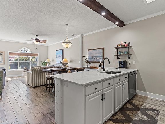 Welcome to WATERFRONT LIVING at Carolina Yacht Landing, nestled in the quaint town of Little River, SC. This stunning 3-bedroom, 2-bathroom First-Floor End Unit offers a direct walkout to the Intracoastal Waterway. Imagine sitting in your screened porch watching the boats go by or walking right out to your own boat for a day on the water! This community is a boater’s paradise with day docks, boat parking, or a slip of your own can be leased at a fraction of the cost of a marina. The home is bathed in natural light and the extensive UPDATES include tile flooring, shiplap, wainscotting, crown and baseboard molding, beautifully tiled showers, upgraded vanities, light fixtures, and ceiling fans. The spacious kitchen has updated Quartz countertops, tile backsplash, cabinets, decorative beam, stainless appliances, and farmhouse sink. The primary bedroom offers his and her closets and an updated en-suite bath you will love. There is direct access to the screened porch and this bedroom is separated from the other two for privacy. The guest bath has also been remodeled with a new tub, tiled shower and flooring, wainscotting, upgraded vanity and fixtures. The home is offered partially furnished so it is perfect for an investment property, primary residence or vacation getaway home. This gated community allows golf carts, has two swimming pools, hot tub, clubhouse and fitness center. You are a golf cart ride away from the beach, popular restaurants, and shopping. Make your appointment today to see this beautiful home!
