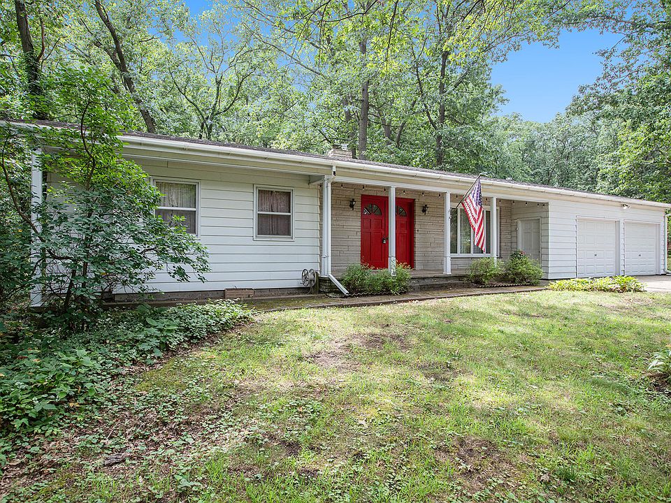 Secluded ranch minutes from town. Home features 3 beds and 2.5 baths. Concrete driveway , newer roof , and new furnace this year. Large living room and kitchen. Enjoy your time in the awesome sun room with panoramic views and heat. Home has a full basement with walkout. Awesome bar just needs flooring. 2 car garage attached to house. Behind the house is another large 2 car garage with heat perfect for extra storage or a nice shop.