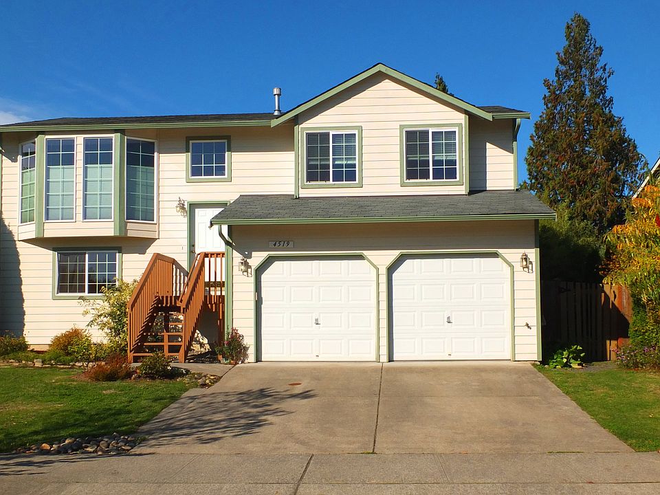 WELCOME TO YOUR Stunning 4 BD 2.75 BA home! HUGE finished basement features bath+ lg rec room providing 5th bdrm/MIL/bonus option! Large sunny kitchen offers NEW counters AND flooring.Vaulted ceilings, gorgeous living w/gas fireplace & lg dining with access to your private sunny deck! Lovely Master w/attached bath+2 closets. XL custom windows unique to home create tons of natural lighting that you will love! Custom lighting and dimmers throughout home! Beautiful french doors to lower level office/bedroom. Over-sized laundry. Large sweeping corner lot location, lush/private fully fenced yard, deck + patio, Xtra storage custom-built in 2-car garage! Neighborhood parks/playgrounds, easy commuter access to I-5. No HOA's-WOW!