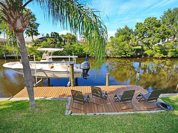 WELCOME TO YOUR NEW BOATING PARADISE! This lovely 3/2/2 plus office or den home features a private dock and 10,000 ilb. boat lift. Finished in 2013, this home shows pride of ownership. Nicely landscaped and equipped with a full irrigation system this property boasts a relaxing environment. Come enjoy the open kitchen and floor plan with many upgrades. Great for entertaining any guests. No deed restrictions or HOA fees as this is not in the Inlets community but has the Inlets style! The large walk-in closet in the master and spectacular master bath feature marble counter tops, dual sinks, a garden tub and separate shower. A short boat ride brings your right out to the many waterfront dining options and stunning attractions this area has to offer. Located on a dead end street,be sure to enjoy shopping, dining, downtown, malls and I-75. Be sure to schedule your showing soon on this highly sought after area. A very unique and rare property with private boat lift and dock will surely attract a crowd ! Furniture available for separate purchase. Seller is ready to move