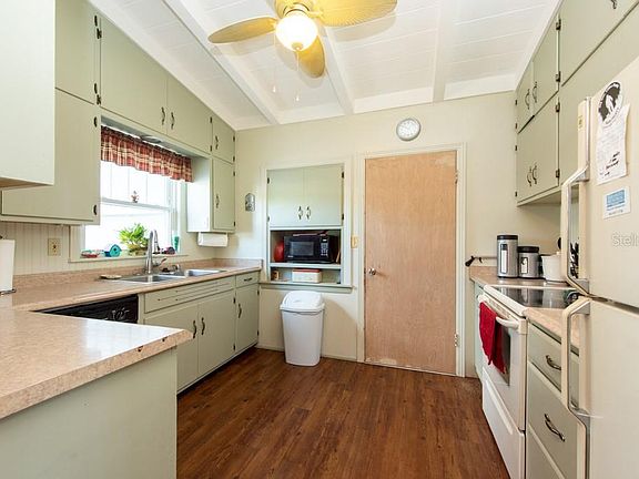 Lovingly well kept home purely charming inside & out! This 2 bedroom, 2 bathroom home offers nearly 1,400 SqFt on its 0.24 ACRE LOT! Located on one of the most desirable neighborhoods in the Bradenton area, just a few minutes away from downtown Bradenton, close to the shops, and the beaches!! You can almost feel the bay breeze! This quiet street is great for jogging, walking, running, and biking! As you enter the welcoming, LARGE family room, you will immediately notice the large open living and dining rooms. The dining and living areas offer paneled walls, BUILT-IN shelving, a WOOD-BURNING FIREPLACE, VAULTED ceilings, and a drop-down desk. The CHARMING kitchen boasts an abundance of cabinets, and lots of countertops. The master bedroom offers wood flooring, as well as an EN SUITE BATHROOM with a double closet, DUAL VANITIES, a BUILT-IN wall unit, and a pocket door to the toilet and shower. The additional bedroom is easily convertible, is bright, and airy. The guest bathroom features 1-inch tile flooring, tile walls, and a walk-in shower. The ENORMOUS backyard boasts trees that canopy the area, as well as plenty of room to add a pool, extra storage, and anything else you'd like to add! In addition, this home showcases BEAMED CEILINGS throughout!! This home is within a bike ride to the Manatee County Golf Course, walking distance to shopping, restaurants, services, and 20 MINUTES from the Sarasota Bradenton International Airport. Great home in a great location! This one will not last!