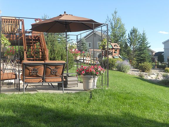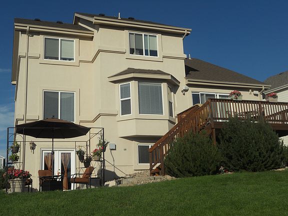 Remarkable 2-story home on .4-acre lot with mature landscaping and views of the mountains, including Pikes Peak. The home is open, bright, and roomy. The entry-way greets you with hardwood floors and grand views of the main level and upper level. Large kitchen adjoins to the great room and showcases views of the mountains. Formal dining room and eat-in kitchen, vaulted ceilings in the great room and the master bedroom are just a few of the fabulous features. There are fireplaces on the main level and in the basement. Master bedroom is large and spacious with large walk-in closet and 5-piece bath. Basement is finished to include walk-out, wet-bar and plenty of space for relaxing on the weekends or entertaining your guests. The large lot allows for plenty of space for all on those warm spring and summer days and allows for plenty of privacy.