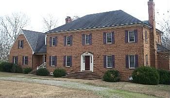 Classic Georgian Brick two story with full basement on 15.5 acres overlooking stocked pond and open grounds. Attention to details in this large estate home with circle driveway, stately trim, beautiful hardwood floors throughout, lots of closets and storage, banquet size dining, 1st floor guest suite, 2nd floor master and library with built ins, 3 additional bedrooms and 2 baths up, a huge family/media room, laundry room,1/2 bath and plant room in basement plus storage. The ceilings are 9'. Den has brick gas fireplace and door to deck made of Trex across back with aluminum railings for easy care. The kitchen has tons of custom cherry cabinets, gas cook top, two ovens, island, door to breakfast/sun room, back stairway, door to deck. Easy access to Maidens road just 4 miles on Cosby Rd.