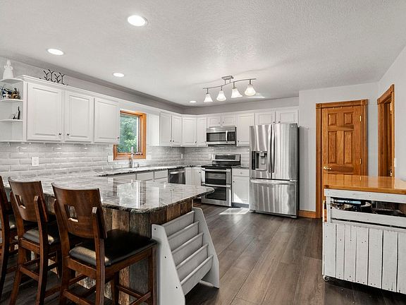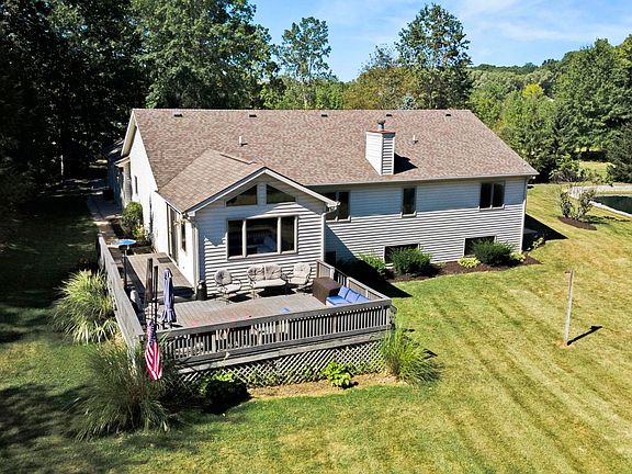 WOW! Are you looking for that peaceful country setting while not ready to give up being close to work, shopping, and restaurants? Take a look at this lovely ranch on a finished basement, located on 4.88 acres, close to Parkview Regional Medical Center. The main level provides a wonderful vaulted great room with a gas log fireplace, a large, remodeled kitchen that connects to the large dining area and the sunroom. Beautiful views of the wildlife, pond, trees, and grounds are offered throughout the living space. The main level has 3 bedrooms and 2 full bathrooms, and one ½ bath at the laundry area. The kitchen has newer LVP flooring, breakfast bar, double drawer electric oven, built-in microwave, French door refrigerator, and a pantry. The Master suite has been remodeled with a tile walk-in shower, dressing table, and 2-sink vanity. The recreation room, storage, half bathroom, and a shop can be found in the finished daylight lower level. There is a newer Water Softener, newer water heater (2016), HVAC (4/2021), 2 sump pits with pumps. The attached garage measures 26 x 24, with peg board, and attic pull down to storage. There is a second detached garage that is 20x20 perfect for vehicles, toy storage, or hobbies. To enjoy the setting, there is a large trex deck that flows to a 13x13 stamped concrete patio with firepit area. Terrific wildlife, secluded setting... Hunter's Retreat! Mature hardwood trees and trails. Apple and Peach trees recently added.