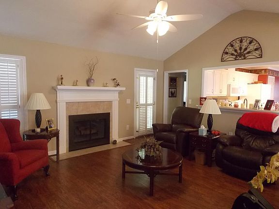 Neighborhood with sidewalks! 3 BR / 2BA, great room, foyer and dining room with hardwood floors. Open split floor plan with fireplace in great room. Ceramic tile floor in kitchen, smooth top stove, new dishwasher & microwave in 2018 and lots of cabinets and pantry. Master BR with walk-in closet and bath with whirlpool tub, separate shower and double vanities. Plantation shutters throughout home. Covered back patio and fenced backyard. Double garage, sprinkler system & alarm system..