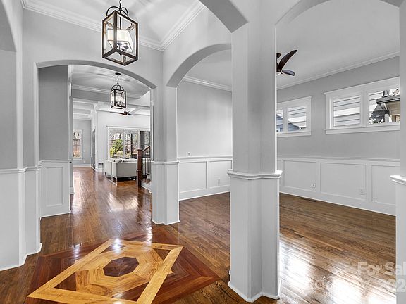 Premier house built by Grandfather Homes in 2016 located in a quiet pet/child friendly cul-de-sac. A Tudor-style arcade foyer leads to an inviting open floor plan, 10ft coffered ceilings & stunning stone fireplace. House features high-end upgraded finishes with custom kitchen and bathrooms, Lutron lighting controls and built-in interior & outdoor sound system. First floor primary bedroom has a built-out seating area, vaulted beamed ceiling, striking chandelier, walk-in closet, bathroom with dual vanities, granite counter tops, custom steam shower & large jetted tub. Gorgeous exterior with in-ground irrigation, screened porch, paver patio, and gated fence. Upstairs has 3 bedrooms, 2 baths, bonus room, and walk-in attics. Attached 2-car garage has large storage area. Located in Myers Park school district, walking distance to Freedom Park, Dilworth, South End, Park Road Shopping Center and major hospitals, this home is located close to some of the most desired destinations in Charlotte.