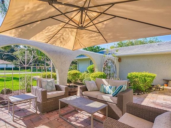 GLORIOUS SUNSETS - PANORAMIC GOLF COURSE VIEWS - LIFE IS GREAT IN THE MEADOWS!!! Pride of ownership shows in this 3 BEDROOM 2 BATH POOL HOME that has been meticulously maintained and BACKS UP TO THE GOLF COURSE! Outdoor spaces contribute to the Florida lifestyle and this home has plenty of outdoor areas starting with the spacious front courtyard with beautiful arches and pretty pavers - a perfect setting for your morning coffee! Once inside, you will love the elegant finishes - including BRAZILIAN RIVER STONE GRANITE COUNTERTOPS, CROWN MOLDING and 18 INCH CERAMIC TILE THROUGHOUT. The kitchen is the heart of this home, open to the living room and large breakfast area. The spacious lanai extends your indoor living space to the outdoors with its beautiful pavers and unobstructed picturesque views of the golf course - there's lots of room for entertaining or simply taking in a stunning sunset! Off to the right, you will find the large, private pool - take a dip or swim some laps! As this home is a FORMER BUILDER'S MODEL, some of the added features include an OVERSIZED LOT, BUILT-IN STORAGE UNITS IN THE GARAGE, WHICH IS ALSO CENTRALLY AIR-CONDITIONED, however, it is not included in the living space square footage under air. So, it is bonus air-conditioned space if you choose not to park your car(s) in the OVERSIZED GARAGE! The Meadows, a resort-style community, offers 14 miles of hiking and biking trails, fitness center, community pool, pickleball courts, and various other activities including pay-to-play tennis and golf. Centrally located with easy access to Downtown Sarasota, the white sandy beaches of Lido, Longboat & Siesta Keys, world-class arts, museums, theatre, shopping, dining and so much more - you're going to love living in The Meadows! This is a MUST-SEE, MOVE-IN READY POOL HOME - DON'T MISS THIS OPPORTUNITY - SCHEDULE A SHOWING TODAY!!!