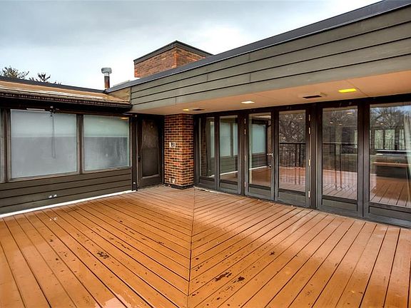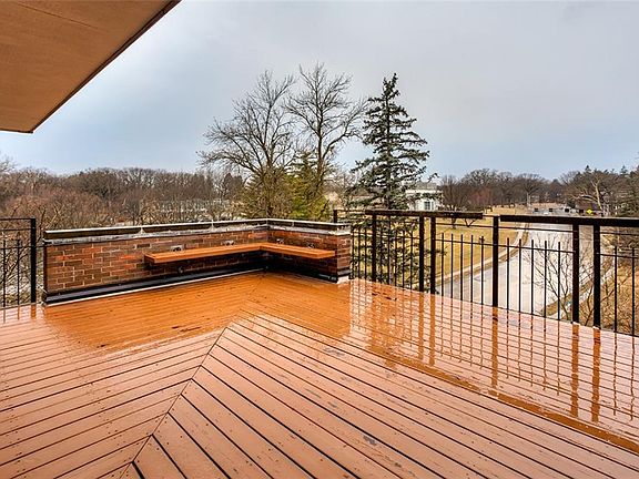 Move on up to this stunning penthouse condo overlooking Greenwood Park and the Des Moines Art Center at the Parkview on Grand building. A rare find, the top floor penthouse has more than 2600 sq ft finished, 2 bedrooms and 2 full baths. The elevator entrance opens to a marble tiled foyer leading to a huge living space with a wall of south facing windows and built-ins as well as west access to a large private terrace. There is also a family room/den with built-in book shelves/storage, a fireplace and counter opening into the kitchen--perfect for entertaining. The sleek black kitchen has white marble counters and floors and all appliances are included. The condo has a ¾ hall bath, bedroom with walk-in closet as well as a fantastic master suite with built-in king-size bed frame, nightstands, dresser and full bath. The master offers direct access to the terrace. Secure building entrance and 1-car garage.