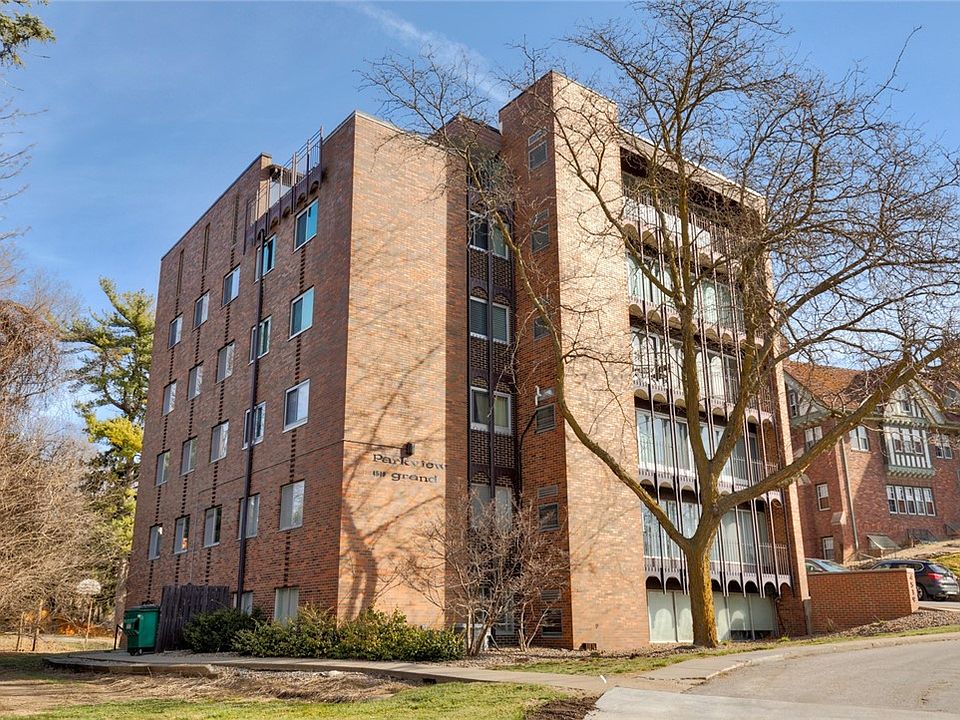 Here's your opportunity to own a 3 bed + 2 bath condo at "The Parkview" on Grand conveniently located across from the Des Moines Art Center and Greenwood + Ashworth Park! You'll love the mid-century modern vibes with polished concrete flooring and a new kitchen (2022) featuring quartz counters, modern cabinetry, and stainless steel appliances! Take in the natural light and beautiful views of nature from the large windows with custom Hunter Douglas shades (2020). Both bathrooms were renovated (2022) including all new plumbing! 3 bedrooms allow for guests, office and/or rec space. Oversized 1 stall detached garage to accommodate parking + additional storage. Reserved Parkview spaces in the lot allow for overflow parking. Easy access to Ingersoll District, downtown amenities, Roosevelt Shops, etc. New AC (2020) + new roof to be installed beginning 3/25/24. This move-in ready condo and The Parkview community is welcoming its next owner - will that be you?!