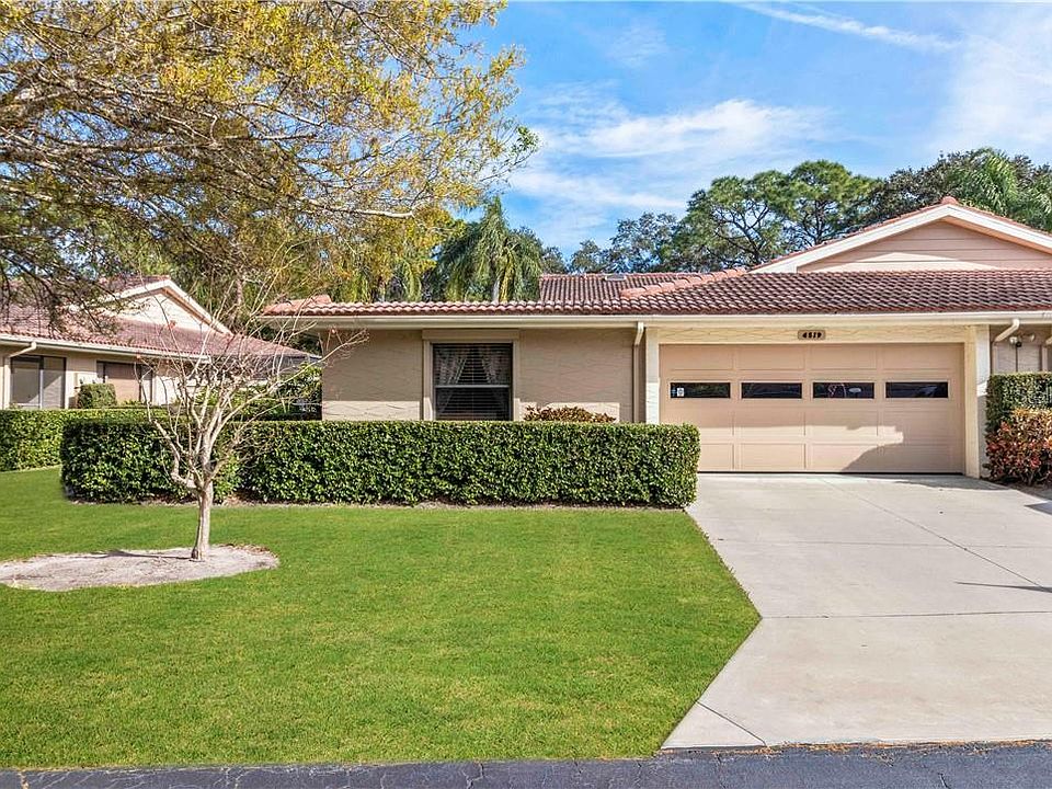 Tremendous value in the Center Gate Estate Villas, a very desirable 55+ maintenance free residential community. Very spacious, true 3 bedroom, spacious open floor plan with vaulted ceilings. Updated kitchen with granite counters, and abundance of storage, new top of the line Trane a/c system. Also new hurricane resistant garage door, and some hurricane shutters. Pristine & private wooded views. Well maintained in pristine condition by current owner. Low fees and well funded reserves. Owner is offering 1 year 210 Homebuyers warranty at closing. Tile roof is maintained by the association. Conveniently located to shopping, restaurants, I75, hospitals & beaches.