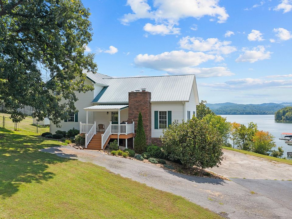 Lakefront Beauty. This home has a chalet feel with vaulted wood ceilings. The main level has an open floor plan. Two bedrooms are located on the main level. The master suite is located on the upper level. The home sits on 2.19 acres. Enjoy the lakefront life and priceless views of Cherokee Lake and the Tennessee Mountains. The home is move in ready. The home has an individual heat pump for both levels. The front and back decks are composite for long wear. The home has a private boat dock. The kitchen boasts granite counter tops and tile floors. The kitchen features stainless appliances. The home has beautiful pine flooring in the living area. The living area has 2 custom corner shelves that will remain. A stone fireplace enhances the living area. The yard is also fenced. The washer/dryer remains as an added bonus.