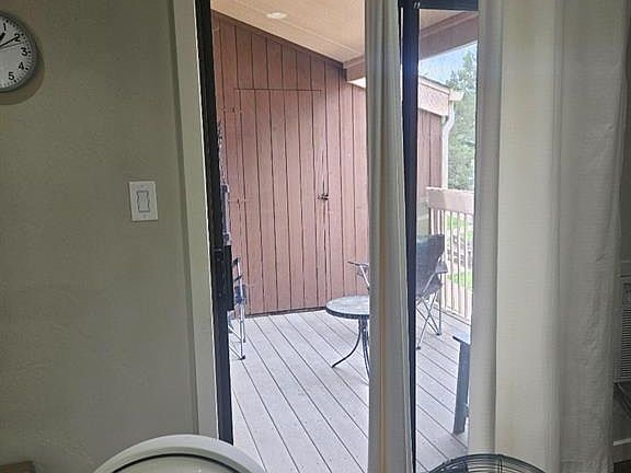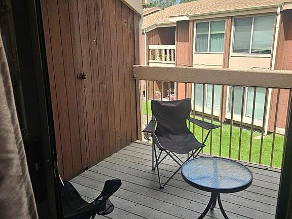 Cute top floor condo in Colorado Springs features laminate floors in the entry, living and kitchen creating a warm and inviting atmosphere. The living area has lots of natural light and open concept. The remodeled galley kitchen boasts stainless steel appliances, granite countertops, and plenty of cabinet storage. The unit features two bedrooms, both moderately sized with ceiling fans in both. The primary bedroom has sliding door to the partially covered deck, sound dampening panels and ample closet space. The bathroom is made up of a tile shower and modern fixtures. The private balcony is perfect for enjoying morning coffee or evening cocktails. One of the most convenient features of this unit is the in-unit stackable washer and dryer, allowing residents to do laundry from the comfort of their own home. The evaporative cooler is mounted in the kitchen window. Community includes a charming pool for recreation close to home. Located close to shopping, dining, and entertainment. Easy access to Peterson AFB, Ft. Carson, UCCS. Multiple hospitals all within 5 miles. Fire stations within 1.8 and 2.3 miles. Colorado Springs airport just a 20 minute drive away. Hiking/biking in Palmer park is just over 1 mile away.