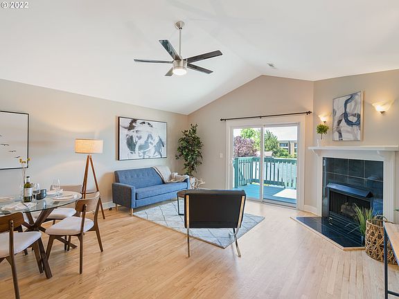 Charming, turn-key 3 bedroom, 2.5 bath townhouse in the heart of SE Portland. Open concept kitchen with stainless appliances looking onto living room with vaulted ceiling, gas fireplace & lovely hardwood floors. Light filled owner's suite with private bath & walk-in closet. Balcony with views to downtown & the west hills. Private fenced backyard for grilling, entertaining & 4 legged friends. No HOA. Completely upgraded. Short walk to public transit, parks, pubs, restaurants & shops.