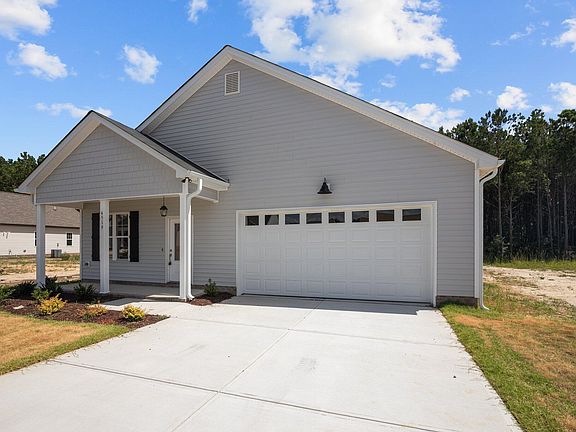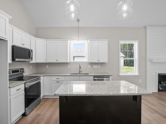 SELF-TOUR AVAILABLE! Explore this home at your convenience! $5,000 SELLER CONCESSIONS plus AMAZING LENDER CONTRIBUTIONS AVAILABLE! Eligible for community reinvestment loan! Backs to a private wooded area! This custom-built ranch plan showcases luxury hardwood-style flooring throughout the main living areas. The gourmet kitchen features granite countertops, white painted cabinetry with satin nickel hardware, a custom-painted island with breakfast bar, stainless steel appliances including a smooth-top range, microwave, dishwasher, and a walk-in pantry. The owner's suite offers a tray ceiling, plush carpeting, and a spacious walk-in closet. The owner's bath includes a dual vanity with cultured marble countertops, white painted cabinets, and a private water closet. Relax in the family room with a custom-trim gas log fireplace and access to the covered porch. Spacious secondary bedrooms and a mudroom/drop zone connect to the oversized 2-car garage!