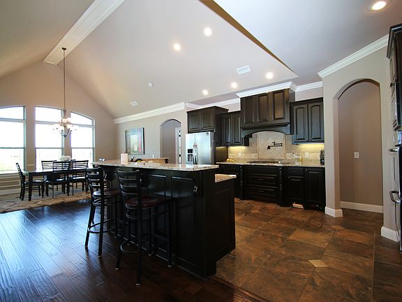 Fabulous 4 bedroom, 3 bath split plan established Cross Creek subdivision. Master suite plus guest/study on main level. 2 bedroom with additional professionally designed theatre room upstairs. 3 car garage and storm shelter. See attached amenity sheet with custom/added features, community pool, soccer/baseball fields, walking trails, stainless refrigerator to convey. Hand scraped hardwood floors in master, outside covered deck w/fireplace and gas grill