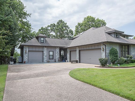 Spectacular lakeside home in the Coves at Bird Island. Features include beautiful panoramic view of Grand Lake equal to none, updated bathrooms and fixtures and kitchen and appliances, large open lakeside living room with 20' vaulted ceiling, crown molding, gorgeous wood work and access to lakeside decks, an open lakeside dining room and lakeside facing kitchen. A large lakeside master suite and en suite guarantees a peaceful retreat. A second bedroom with private bath is perfect for company and friends. A third bath and utility room complete the first floor. There are two additional guest bedrooms and full bath on the second floor. In addition to an attached three car garage there is a detached 618 sq. ft. garage and shop with full bath. A lot of home for the money. Great location.