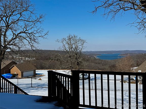 Incredible Year-Round Lake Tenkiller Views! This stunning 3 bedroom, 3 bathroom lake home offers 2,485 sqft (per AP) of well-maintained living space and sits on .65 acres (M/L) with breathtaking views of Lake Tenkiller throughout the year. A bonus room provides flexibility and could easily serve as a 4th bedroom, game room, or home office. Inside, the home features rich wood floors, a spacious living area with gas fireplace and built-in shelving, a formal dining space, and an open kitchen complete with granite countertops, stainless steel appliances and dining space. Enjoy lake views from the living room, primary bedroom, and back deck, creating the perfect setting for both everyday living and entertaining. Outside, you’ll find a large back deck, fenced yard, 2-car attached garage, and an oversized detached garage ideal for storing boats, ATVs, and other lake toys. Additional features include a new roof (2024), gutters with leaf filters, and a freestanding generator, offering added peace of mind. Located a short drive to Snake Creek Marina, this property will make lake living a breeze! This stunning lake home combines comfort, functionality, and unmatched lake views—perfect for full-time living or a lake retreat.