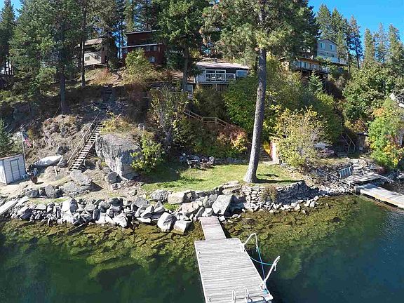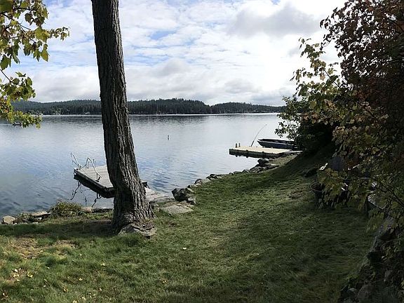 Remember that cozy waterfront cabin from your childhood? Or...maybe you want to make that memory for future generations? Then you MUST SEE this cabin! 50' of deep water waterfront includes a grass yard surrounded by natural rock, a dock, amazing views from the upper deck...set on the point so you feel secluded, yet there you are on the lake. Across the bay from Granite Point. 60 acres of private trails+boat launch. Come play, fish, hike, relax, enjoy the views...it's all waiting for you. Public WATER/SEWER!