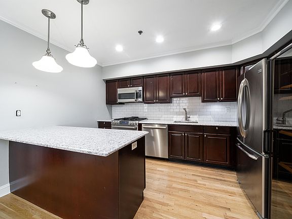 AVAILABLE MAY 15th, 2025. Spacious and thoughtfully laid out, 2-bedroom, 2-bathroom home spanning over 1,350s/f in the heart of Hoboken. This open concept features a nicely equipped kitchen with granite countertops, stainless steel appliances, wine fridge, an abundance of cabinet storage, and breakfast bar with overhang for seating. The living room/dining room area features a gas fireplace, direct access massive private terrace spanning over 20' and boasts plenty of space for a separate sitting/entertaining area, plus ample room for a formal dining space. The bathrooms have been updated and offer a sleek and modern aesthetic. The primary bedroom has a spacious walk-in-closet with custom built-ins and ensuite bathroom. Guest bedroom features a generous layout and tons of closet storage with custom built-ins. Additional highlights include hardwood floors throughout, central A/C, high ceilings, one car garage parking spot, washer/dryer in-unit and private storage. Conveniently located in the heart of Hoboken, this home is close to grocery stores, restaurants, shopping, PATH buses to NYC, parks, schools and the Hudson River waterfront promenade.