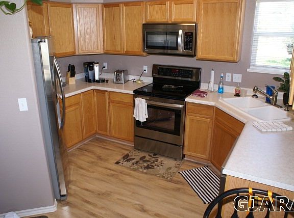 VERY nice home! Don't miss out on this one. Nearly 1300 SF with 3 bedrooms, 2 baths, 2 car garage & COMPLETELY dialed in. This one has virtually new stainless steel appliances & new hardwood floors. Nice floor plan with extended back patio overlooking small pond & nice back yard that is in tip top shape. The master bath is very nice! No maintenance front yard provide excellent curb appeal & is hassle free.