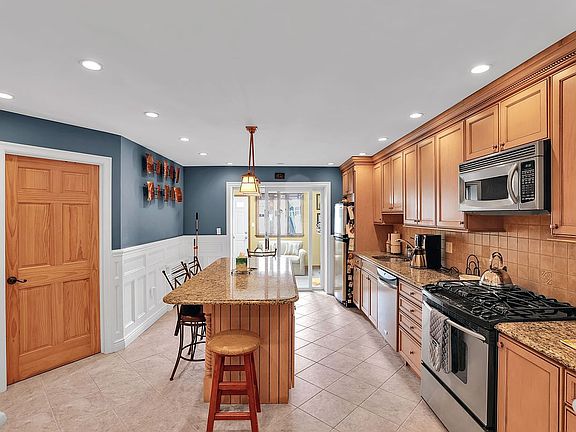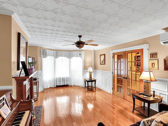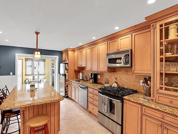 Large living room with tin ceiling, ductless a/c system, large renovated eat-in-kitchen with center island, all granite counter tops, Kitchen Aid stove, refrigerator and dishwasher. Bathroom with walk-in-shower, laundry room, and sun room which leads to large finished yard with pavers.