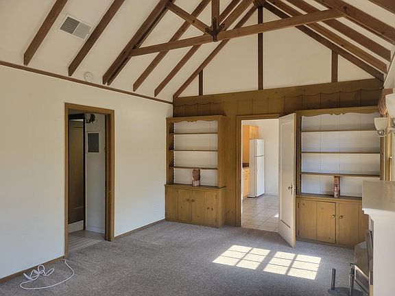 This Charming 1-bedroom cottage with vaulted ceilings and private garden is truly a hidden oasis located just steps from bustling University Avenue in the heart of Palo Alto. This sun-filled, quiet stand-alone home includes breathtaking vaulted wood beamed ceilings, functioning fireplace, renovated bath, as well as modern kitchen bathed in natural sunlight from the high ceilings and skylight. The serene bedroom opens directly through sliding glass doors to your private wood deck and landscaped private garden. Other features include covered car park, walk-in closet, and a small standalone converted garage with direct access to the sun-filled garden, perfect for an office or home gym. Don't miss this rare opportunity to rent your own small, private property in downtown Palo Alto. Tenant pays for all utilities Owner pays for gardener.