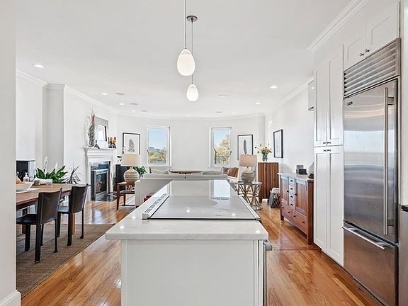 This quintessential floor-through penthouse condo is exquisitely renovated and located on the sunny side of Beacon Street with multiple Charles River views. Our most adored features include a private balcony, direct access to deeded oversized parking, three fireplaces with ornate wood moldings & marble mantles, In-unit laundry, central A/C, and nine-foot ceilings. Upon entering, you are greeted by a lovely foyer with marble flooring. An open floor plan allows for incredible flow from the eat-in kitchen to the dining room & spacious living room, all with Charles River views. The eat-in kitchen is equipped with a beautiful marble island, Sub-Zero refrigerator, Bosch D/W, stove & a large pantry. On the other side of the home, you will find three pin-drop quiet bedrooms. The primary bedroom has a private balcony with views of the Prudential, an en-suite marble bathroom, a wood-burning fireplace & two large picture windows overlooking the city & treetops.