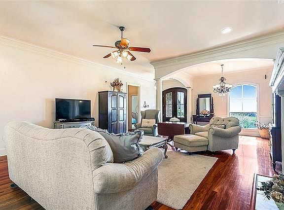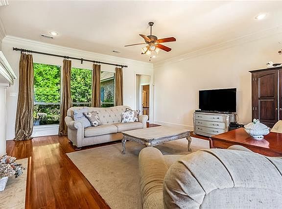 Gorgeous home in Belle Pointe on corner lot w/in a cul-de-sac. Spacious 4 bdrm/3 bath home with an abundance of lush garden surroundings. Lots of windows for natural lighting. Wood floors, SS appliances, gas range, walk-in pantry, granite counter tops, center island & breakfast bar, dble sided fireplace in living room & kitchen, Master en-suite has tray ceilings/ hydro tub/ separate shower/ 2 lrg closets. Huge game room upstairs w/ outside entry. Mandeville High School. Flood zone C.