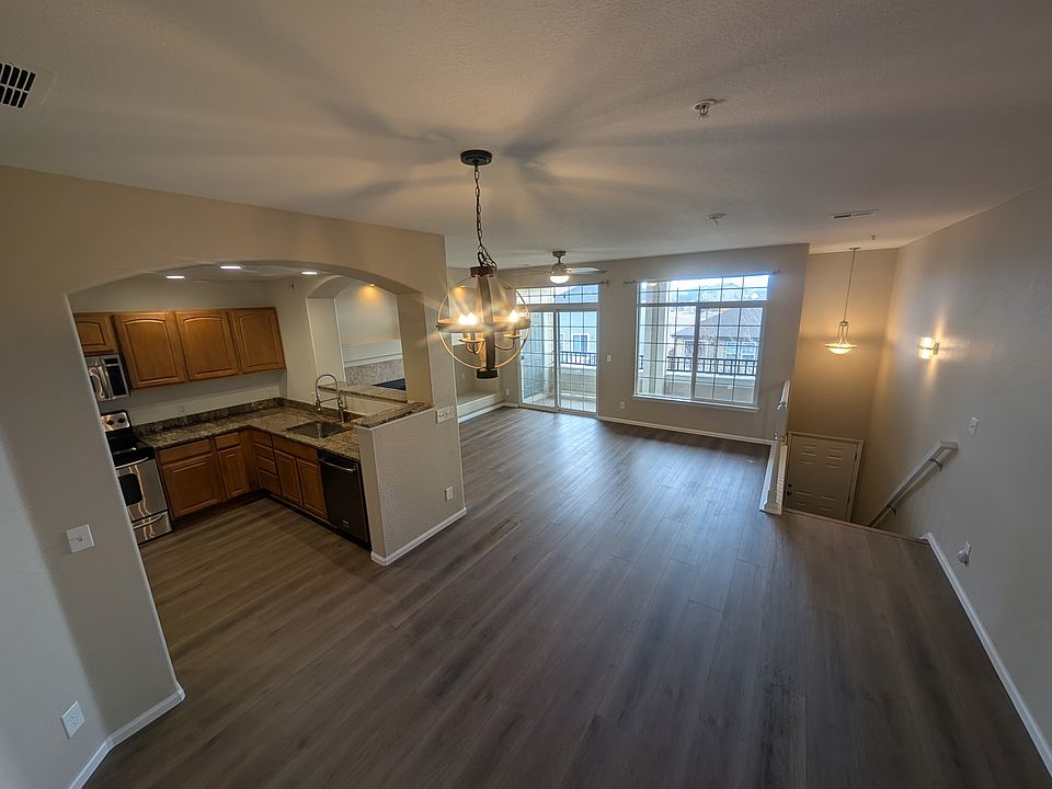 Sunny, bright, airy, and this baby's REMODLED! A MUST SEE! If you're wanting an upgrade from an apartment status, but not ready for a commitment to a house, this is the place for you! NEW! NEW! NEW! This is a three story, two-bedroom, 2 full bath condo and is one of the second largest units located at BlackFeather in the heart of Castle Rock. It features, a new contemporary refrigerator, pristine carpet and flooring making you the first to bask in the luxury of it all, a new water heater, new blinds and fresh screens, brand new trim, all new modern/dimmable lighting and fans, a new disposal and state of the art kitchen sink faucet, and an up to date paint job! This home has been well-loved and cared for and waiting for its next renters to do the same. The kitchen offers a farmers sink, stainless steel appliances, and granite counter tops to make modern day living feeling pretty cozy with the semi-open floor concept. This unit faces South and backs up to a greenbelt, so all the rooms and windows overlook Castle Rocks, "Rock," and other mountain views like Pikes Peak. Being on the second level you'll never have to worry about hearing the people above you, which can make for some much-needed quiet time enjoyment, and a great way to enjoy the Colorado sun and views on your own private balcony after unwinding from a long day. The unit is within walking distance to Renaissance School and Metzler Ranch Community Park, which is home to playgrounds, soccer and ball fields, and a skate park, ideal for those with kids or pets. This condo is minutes away from the Castle Rock Outlets, many restaurants, and grocery shopping centers for your easiest convenience. It's within minutes of I-25 which makes for a quick access to the highway, minus the noise. There are two assigned parking spaces to this unit, and you'll have access to the community pool/hot tub, a fitness center and club house. Dogs are very welcome. Rent also includes water, sewer, trash, snow removal, and lawn care. Please reach out if you can see yourself at home here. We welcome the opportunity to meet you. Renter(s) will be responsible for gas, internet and electric payments. Lease term is for 12 months. Must be approved for a credit check, proof of income, and a security deposit that will be due along with first month's rent.