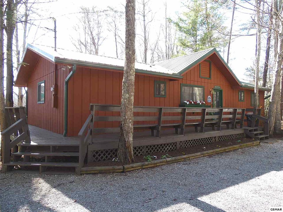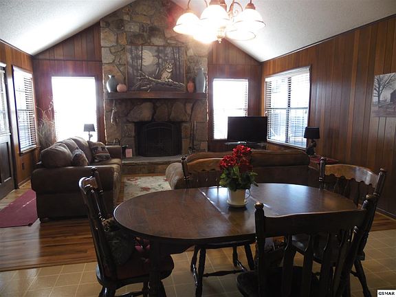 Cozy 2BR/2BA cottage with mountain views. Open floor plan with vaulted ceilings and a stone FP. Kitchen is fully equipped and both Master Suites have jet tubs. Game room with sitting/TV viewing area, and pool table in the finished basement. Deck with hot tub and grilling area. Restained recently. Perfect for a second home, getaway or rental income. Must see! "Bear Mountain Lodge"