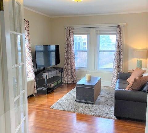 Very charming 2 bedroom 1 bath in a charming stucco building near Harvard Square and across from a park. The apartment was recently cleaned and painted and shows quite well. Probably better for a couple, because if a 2 bed, the living room becomes the second bedroom, and is closed off by french doors. Similar kitchen is clean. There is a private balcony and hardwood floors. Driveway parking is included. Heat and hot water are included in the rent. Walk to Harvard T-Stop in 8 minutes. (Reference #133541) 8/1. Full broker fee