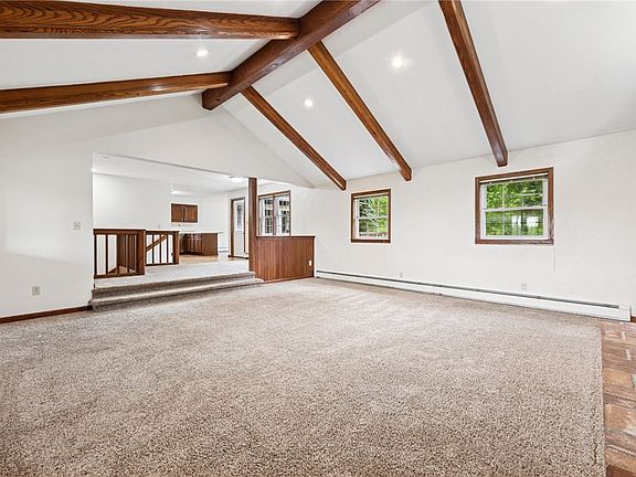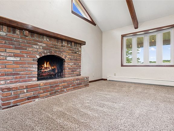Welcome to your own little piece of privacy! Nestled on a beautifully wooded 1.5-acre lot, this inviting ranch-style home offers the perfect blend of comfort and space. Step inside to discover a sunken living room featuring vaulted ceilings with exposed wood beams and a cozy brick fireplace – ideal for relaxing or entertaining. The kitchen includes a charming breakfast nook and flows seamlessly into the dining area, which overlooks the living room—perfect for hosting gatherings. The spacious primary bedroom boasts a walk-in closet and en suite bath completes this floor. Downstairs, enjoy a fully finished walk-out basement complete with a large game room, a second fireplace, abundant storage, and a dedicated laundry room. Plus three additional bedrooms and a full bathroom. Step outside to a generous deck overlooking your private, wooded oasis, or relax on the covered front porch. With plenty of yard space and unmatched privacy, this property is a must see!