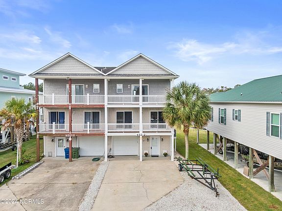 Waterfront living in Sneads Ferry! This beautiful, well-appointed townhouse offers gorgeous canal views, four covered porches, an outdoor shower, a deep water 30' boat slip/dock with water and power, a Tide Tamer boat lift, an RV hookup, an upgraded electrical package in the garage, and a 12x12 shed. The ground level has an abundance of storage and a 2 car garage. Just a short drive to Topsail Beach and Camp Lejeune and NO HOA. This property has never been rented. Make your appointment to view this amazing property and possibly enjoy a beautiful sunset on the back porch.