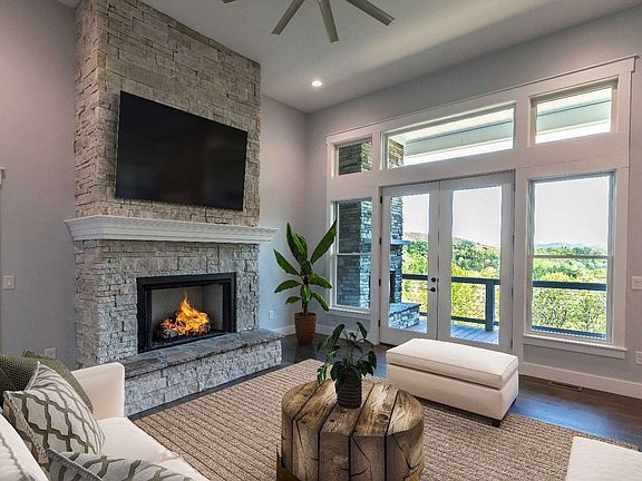 Tour this spacious, stunning Craftsman ranch home in the upscale Chestnut Mountain subdivision minutes south of DT B'ville. Come for the mtn views, stay for the high-end finishes throughout the 1828 sq ft of living space. Cathedral ceiling in LR w/ stacked stone FP. LR French doors open onto deck w/ 2nd FP & long-range mtn views. Lam & tile flooring, loads of windows, granite c-tops (kitch/BA/laundry), huge laundry rm w/ sink & cabs, tv/cable in all BRs & above FP in LR. Large primary suite w/ trey ceilings & massive en suite that includes freestanding soaking tub, walk-in shower, dual vanities, linen closet, walk-in closet, & separate water closet. Finished basement includes covered deck w/ French doors and loads of extra storage space. Dbl garage w/ added storage & huge parking area. Low HOA.