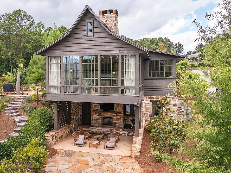 Luxurious 4BR/4BA home in Hawk's Nest on Smith Lake (Ryan Creek). Stunning craftsmanship showcased in two levels, boasting wood plank walls, concrete floors, and expansive windows. Enjoy the beautiful deep water from the boat dock with an upper level. Exclusive amenities include a pool, cabanas, observation tower, green space, boardwalk, and stocked ponds. Low-maintenance stone exterior. Rare!
