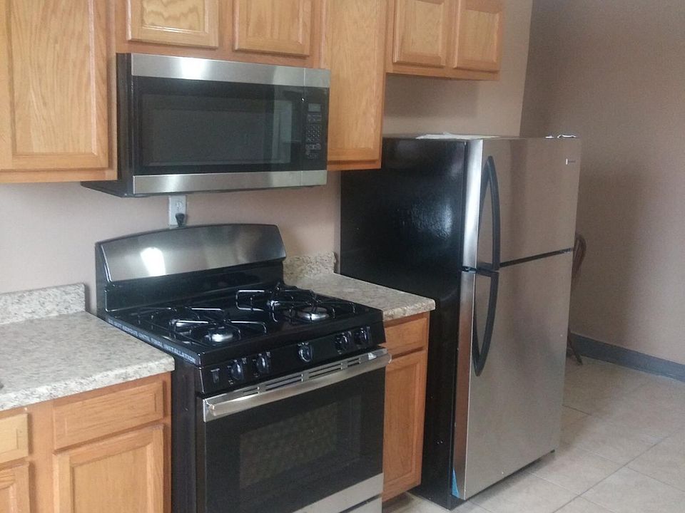 Totally renovated apartment. 2 large bedrooms with bath and eat in kitchen. Second floor apartment along the #8 bus line . All new appliances(stove, fridge, over range microwave). Hardwood and ceramic tile flooring. Central heating and air. Huge balcony Owner pays water. Tenant pays gas and electric . No smoking