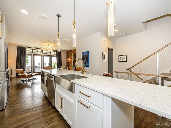 Discover urban living at its finest in this stunning brownstone located in the vibrant NODA neighborhood. With an array of shops, restaurants, and music venues just steps away, this home offers the perfect blend of convenience and culture. Main level is an entertainer's dream, an open concept flowing from dining, kitchen, family room. Fabulous kitchen showcases a large quartz island, Bosch appliances, upgraded cabinets, and opens to huge 15x19 family room w/brick accent wall plus wall of windows to the patio. Upstairs find two primary suites w/luxury spa baths & custom closets, and a versatile first-floor guest suite/home office w/private bath. One primary boasts views of uptown! Two-car rear garage+street parking. Custom lighting, ample shelving/storage throughout, gorgeous stair runner, cable stair railing, custom shades/treatments on every window complete this extraordinary home. Experience contemporary elegance in this exquisite NODA townhome. Close to the Lynx train line!