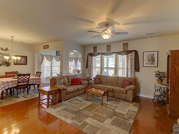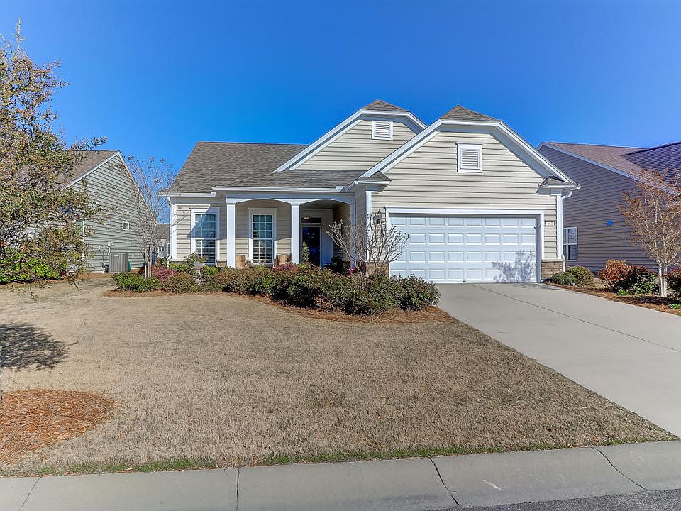 Welcome to the Cooper Ridge Plan. Sit on the front porch and enjoy the beautiful professional landscaped yard.The home offer an open floor plan with hard wood floors granite counter tops stainless appliances and tile in the bath rooms. The home has 2 bedrooms a study which can also be used as a bedroom and relaxing sun room that leads to a large patio.Enjoy sipping a glass of wine under the Pergola overlooking a peaceful pond. The 2 car garage has a sink for easy clean up after planting flowers in your yard. Lots of storage in the attic above the garage be sure to take a look.