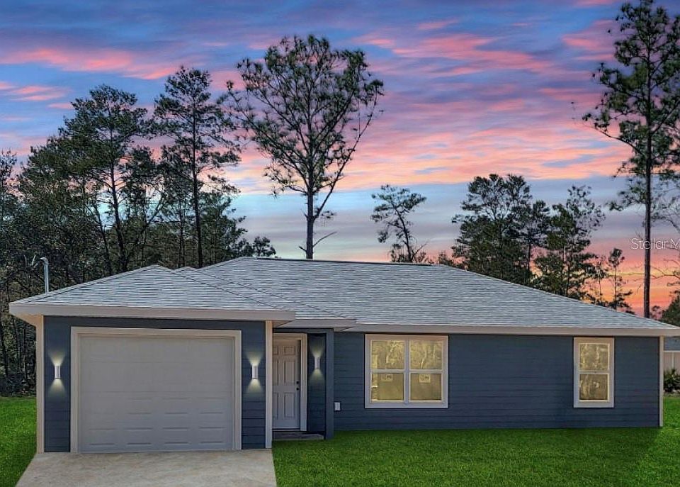 Under Construction. This charming rural retreat is an ideal opportunity for anyone looking for a modern home with all the latest amenities and updates. It features a split bedroom floor plan, open concept living with high ceilings, stylish shaker cabinetry, quartz counters, tiled showers, and vinyl plank flooring throughout. Located 15 minutes away from amenities and entertainment, Lake Weir is the perfect summer hotspot with Gator Joe's and Eatons Beach for dining, and Carney Island for recreation with its beaches, boat ramp, pavilions with grills, playgrounds, and bath house facilities. Don't miss out on this competitively priced home in the quickly developing Silver Springs Shores area! HIGH SPEED INTERNET AVAILABLE