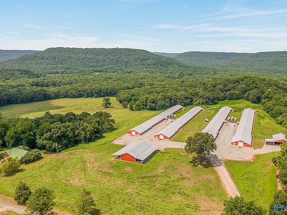 Gorgeous 110 +/- Acre Poultry Farm! 4- 40x500 Broiler Houses with 2 Dry Stack Barns. One Barn is 40x60 and the other is 40x100 with 2 open Sheds on each side. The Custom Built home is so pretty with vaulted and 10' ceilings throughout, all hardwood or tile floors, tankless water heater, spray foam insulation, metal roof, and Fiber internet. There is a gorgeous log barn on the property as well. This is a rare chance to own such a gorgeous farm and home!